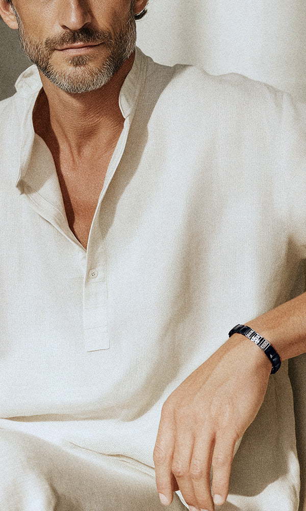 AWNLは、自然が育んできた力を見つめながら、一つひとつの作品に想いを込めて仕立てています。世界中から選び抜いた隕石と天然石は、地球が授けた素材であり、その美しさに敬意を払っています。積み重ねられた時間に学びながら、現代の男性のための護符として形にしています。
