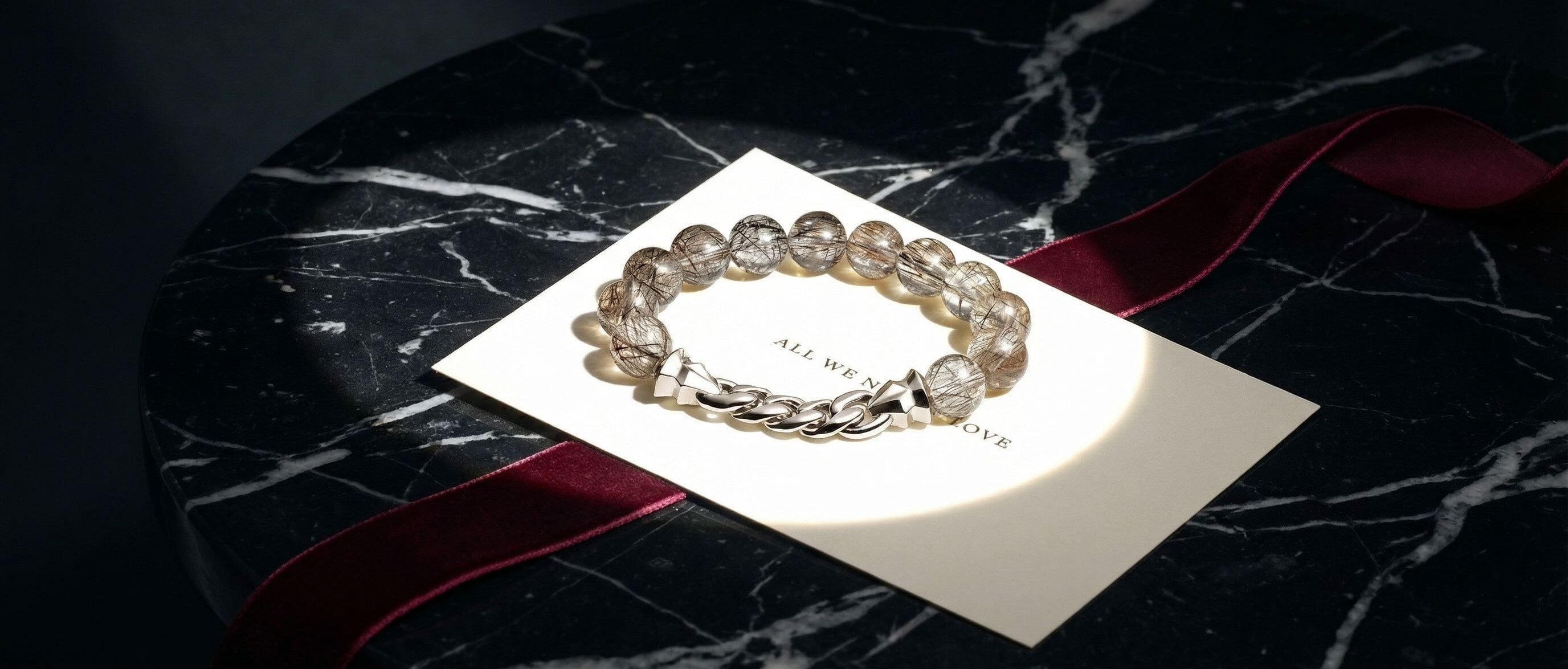 四十五億年前に形成された隕石のかけらが、天然石と金属とともに、ひとつの作品として出会う。