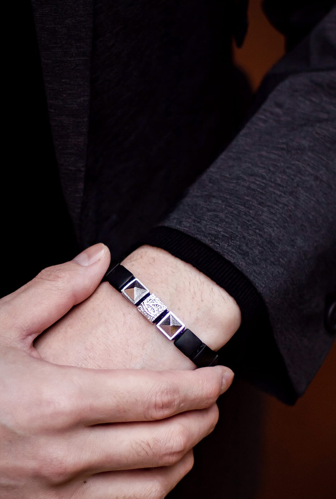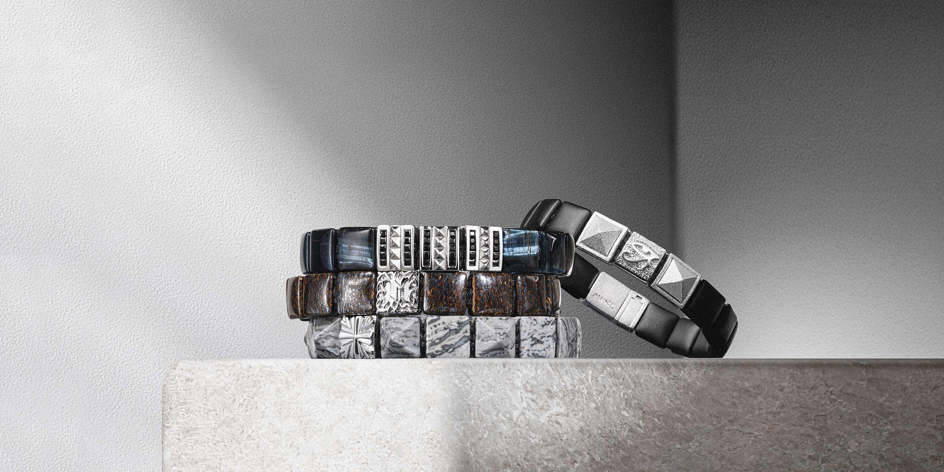 冷徹なS925シルバーと等間隔のフラットビーズが、手首に沈黙の律動を生む。