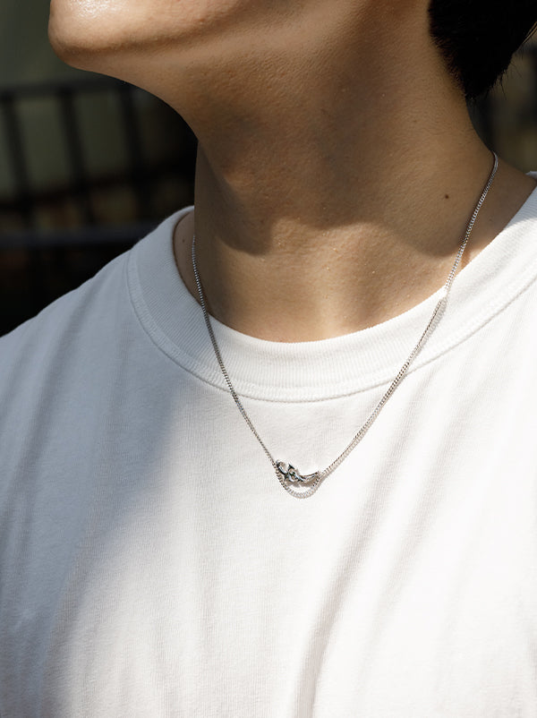 1.8mm幅のキヘイチェーンは月光に照らされた稜線のように連なり、精密なカットが光を連続的に反射。47cmの長さでペンダントを胸元の理想的な位置に置き、3cmのアジャスターで快適なフィット感を調整可能です。