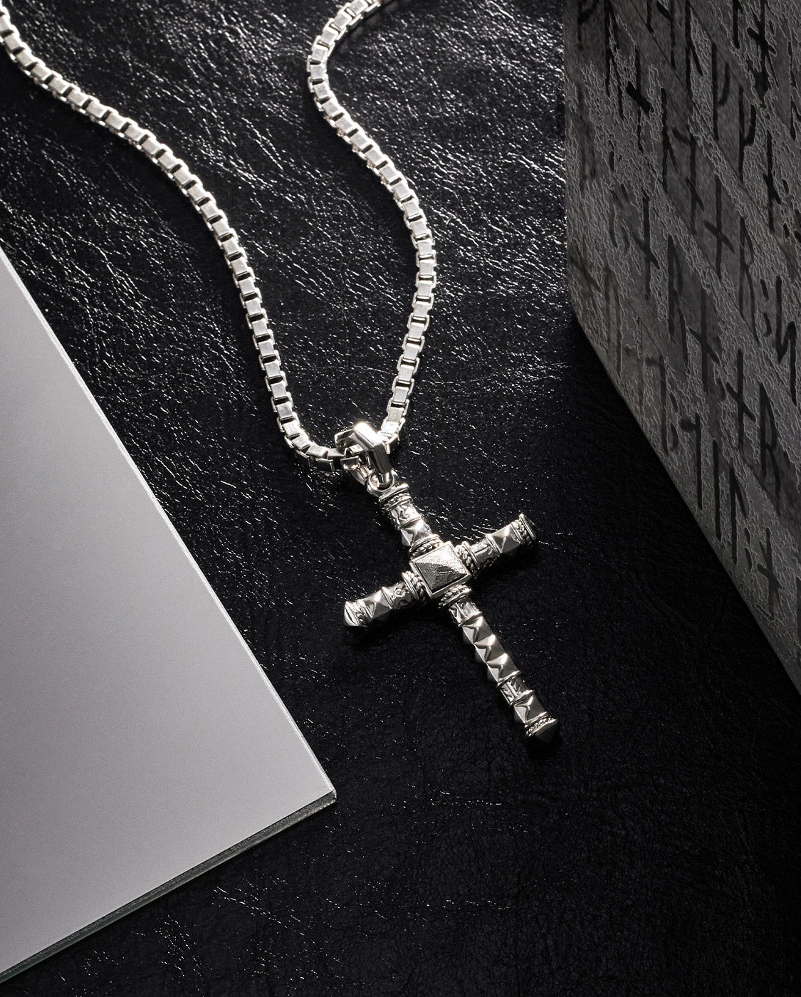 シルバー フェザークラスプ スパイクチェーン ネックレス