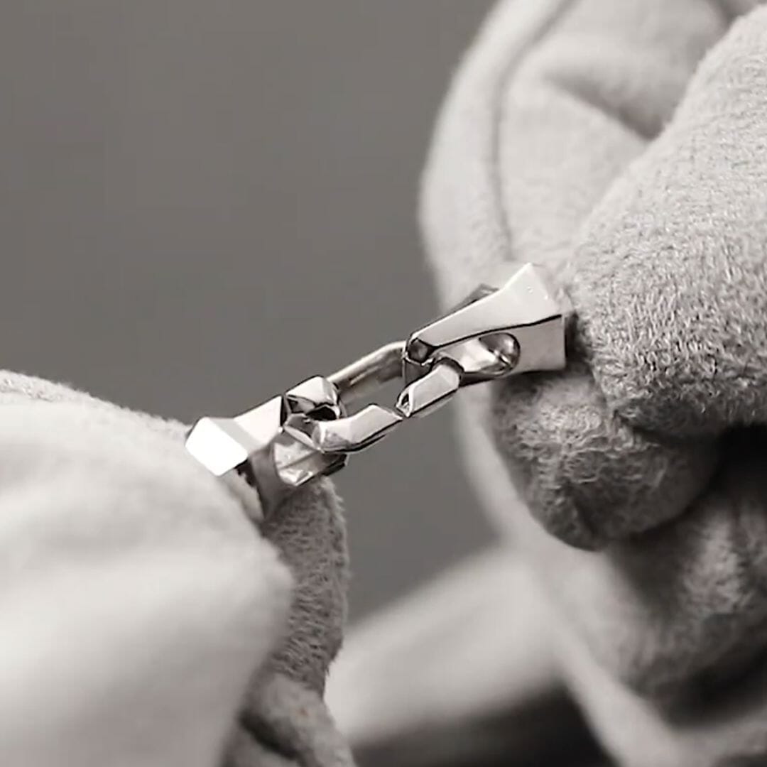留め具は機能部品であるだけでなく、このシリーズでは設計の中心にある。