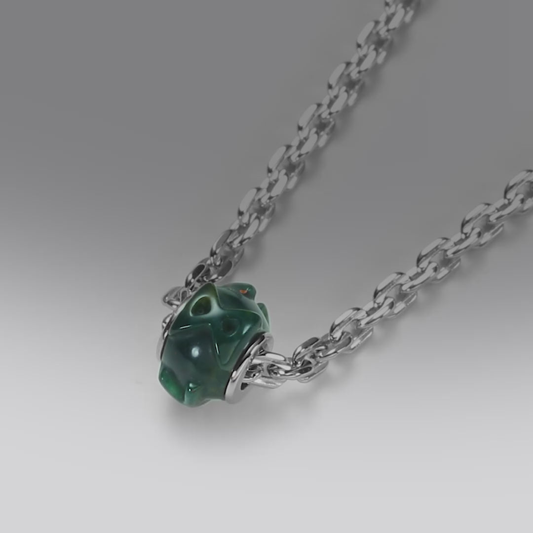 その中に浮かぶ赤い斑点は、大自然が静かに語りかける声のように「命は犠牲によって受け継がれ、恵みは与えることで永遠になる」と教えてくれます。ブラッドストーンは古代ローマの博物学者プリニウスにより「太陽に向かう石」と記され、深い緑の中に散る赤い斑点は宇宙の署名のように唯一無二の模様を描きます。