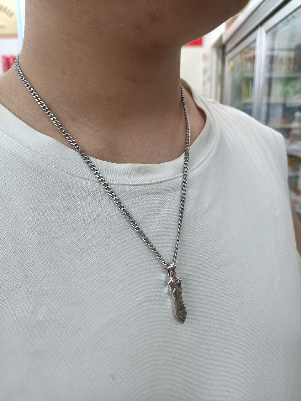 縦長のフォルムは、七つの海を航海する船の舳先を思わせ、中央には隕石の神秘的な模様が宿ります。精緻に刻まれた幾何学的な装飾は、星図と航海図が融合したかのようです。宇宙からの贈り物と、古代の叡智が交差するこのペンダントは、ボックスチェーンとともに首元で静かな存在感を放ちます。
