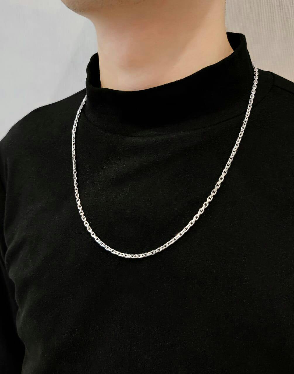 装飾を削ぎ落とし、チェーンそのものの美しさに焦点を当てたこのデザインは、ミニマリズムの思想を体現しています。55cmと61.5cmの長さから選べ、ペンダントトップとの組み合わせにも適した汎用性の高い一本です。単体での着用でも、シャツの内側からでも外側からでも、装いに自然に馴染みます。