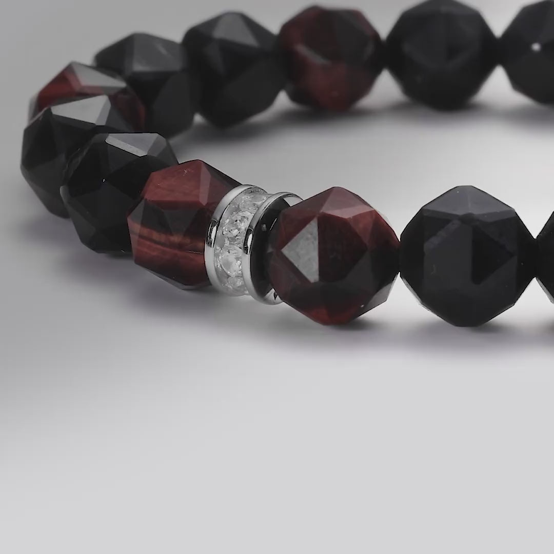 鷹 ブラックオブシディアン&レッドタイガーアイ ブレスレット